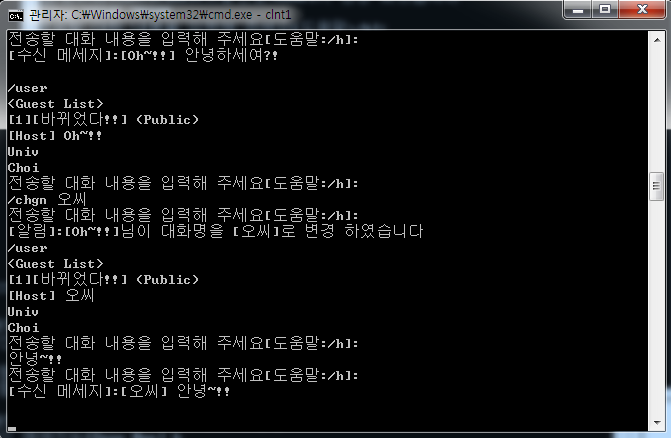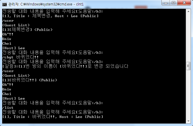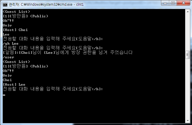 - 만약 명령어 사용 대상이 대화방의 Host라면, Host 권한은 다른 User에게 자동으로 넘어간다.