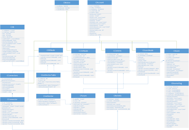 (11) void StoreRoomInformation(TCHAR *p_pMsg) : CCurrentRoom 객체의 데이터(방번호, 대화방 이름 길이, 대화방 이름, 방장의 대화명 길이, 방장의 대화명, 대화방의 속성)를 서버로 부터 전송 받은 데이터들로 갱신 한다.