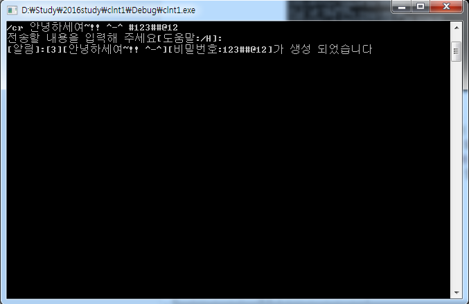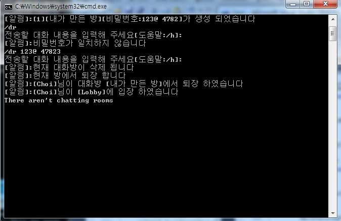 4) 대화방 생성 : /CR [대화방 이름] [#대화방 비밀 번호]