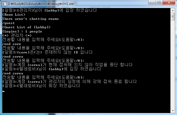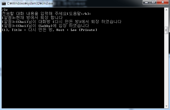 본 시스템은 Windows의 Console 모드에서 작동하는 채팅 프로그램으로써, 클라이언트 사용자가 로비에 접속하여 채팅방을 개설하거나 개설된 채팅방에 입장하여 다른 접속자들과 대화를 주고 받는 기본적이고도 단순한 채팅 기능들을 제공한다.