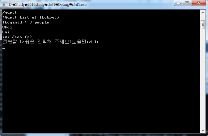 CGuestList 객체에 보관 중인 서버로 부터 전송 받은 대화방내 접속자들의 정보를 첫 노드 부터 순차적으로 출력 한다.