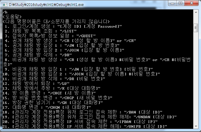 (3) void ShowHelp() : 명령어 “/h” 입력시 도움말을 출력 한다.