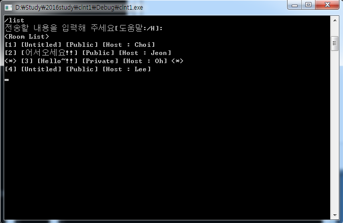 - 현재 서버내에 개설되어 있는 대화방의 목록을 보여준다.