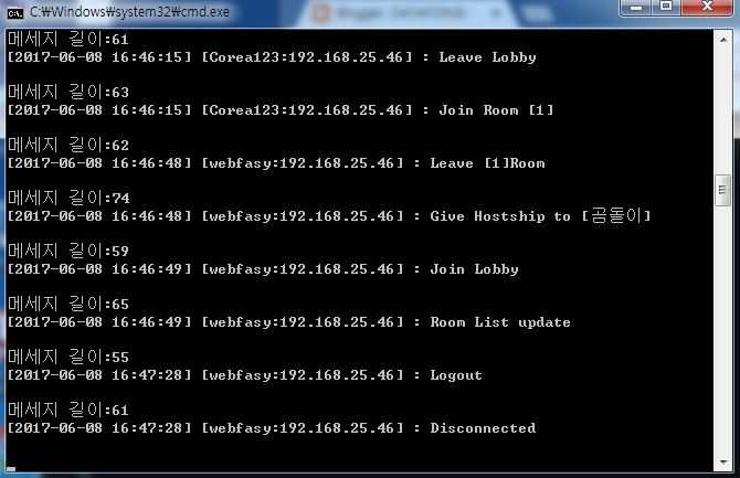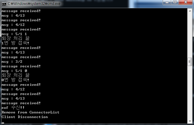 이후 CConnectorList 객체 내의 접속자 목록에 해당 IP를 가진 클라이언트가 존재하는 경우, 이 클라이언트에게 RequestEOFMessage 메시지를 전송하여 서버로 EOF 메시지를 발신토록 한다.