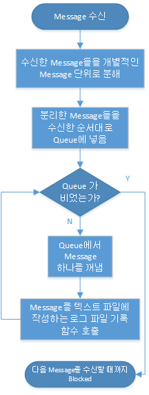 다음은 메시지를 로그 파일 기록 함수의 작동 과정을 개략적으로 표현한 순서도다.