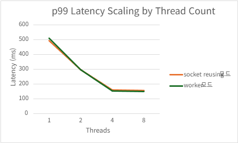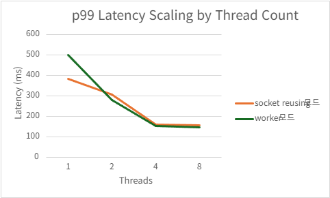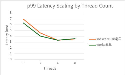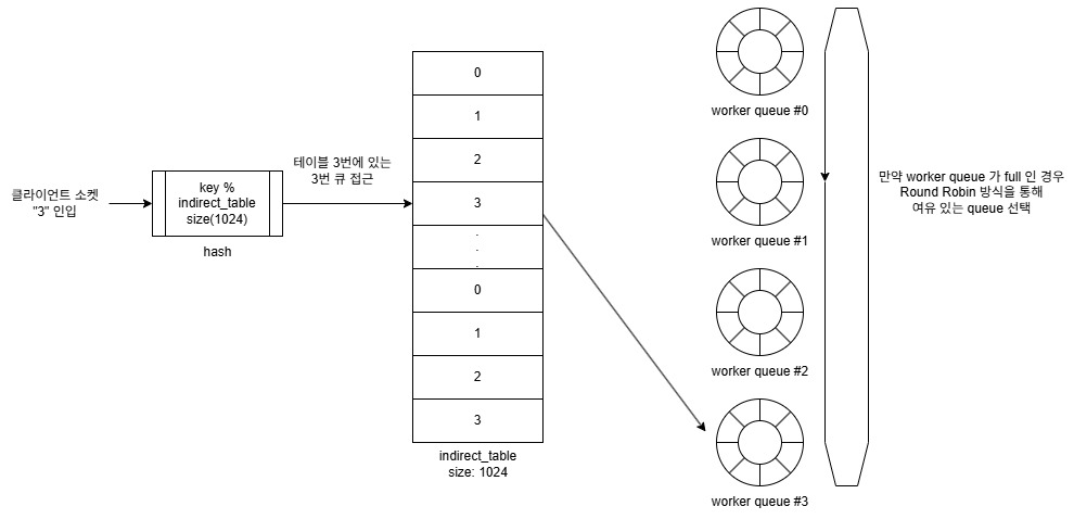 acceptor에서 worker로의 작업 요청은 load balancer에 의해 분산 되어 SPSC(Single Producer Single Consumer) 구조의 lock-free 큐를 통해 전달 된다.